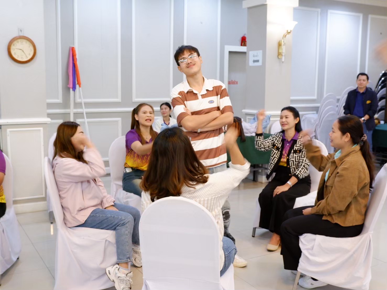 รีสอร์ท อำเภอเมืองนครนายก จังหวัดนครนายก ประกอบด้วยพนักงานส่วนตำบล และพนักงานจ้าง สังกัดองค์การบริหารส่วนตำบลหัวหว้า จำนวน 45 คน และวิทยากร จำนวน 5 คน รวม 50 คน