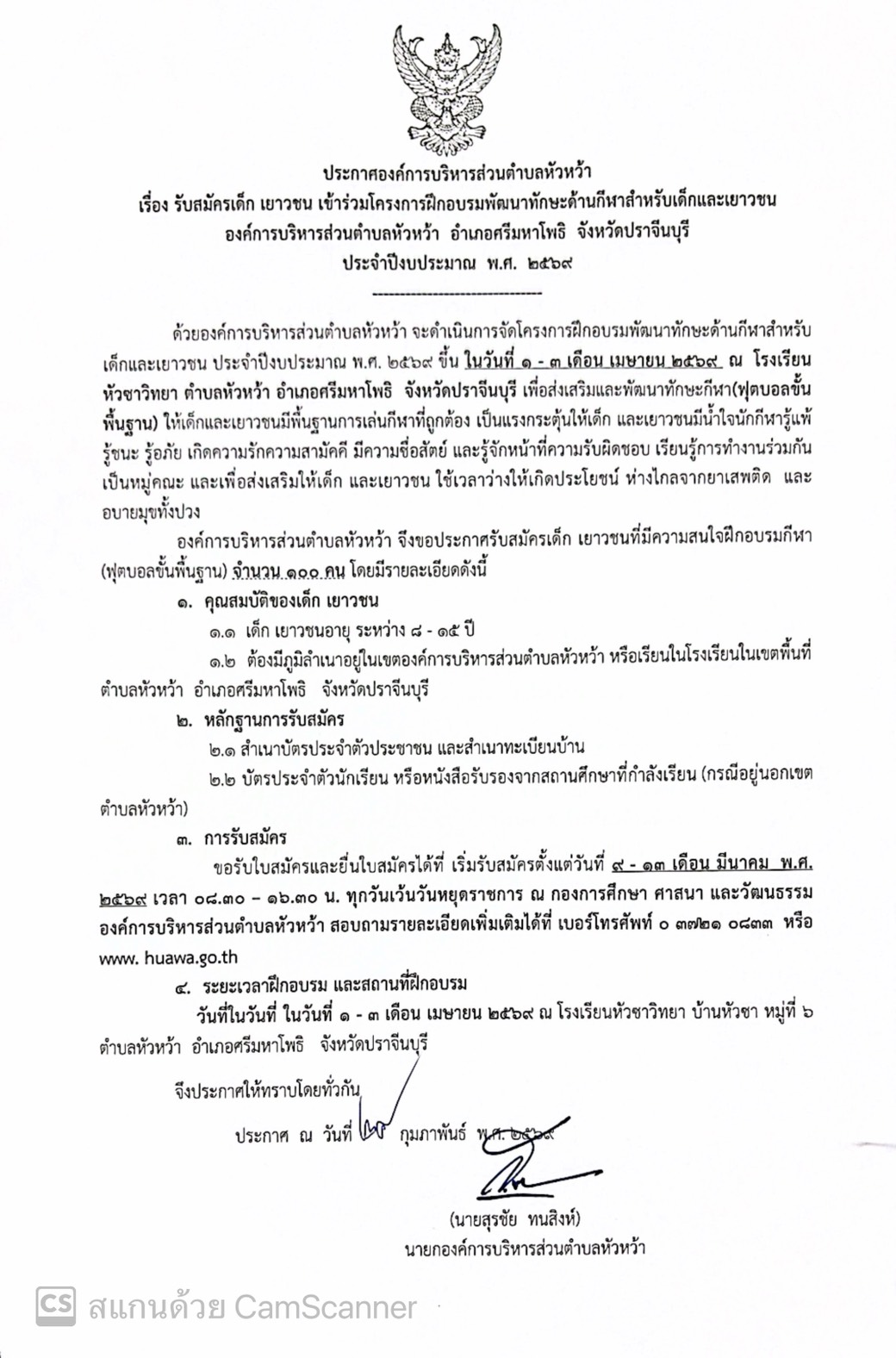 รับสมัครเด็ก เยาวชน เข้าร่วมโครงการฝึกอบรมพัฒนาทักษะด้านกีฬาสำหรับเด็กและเยาวชน ประจำปีงบประมาณ 2569